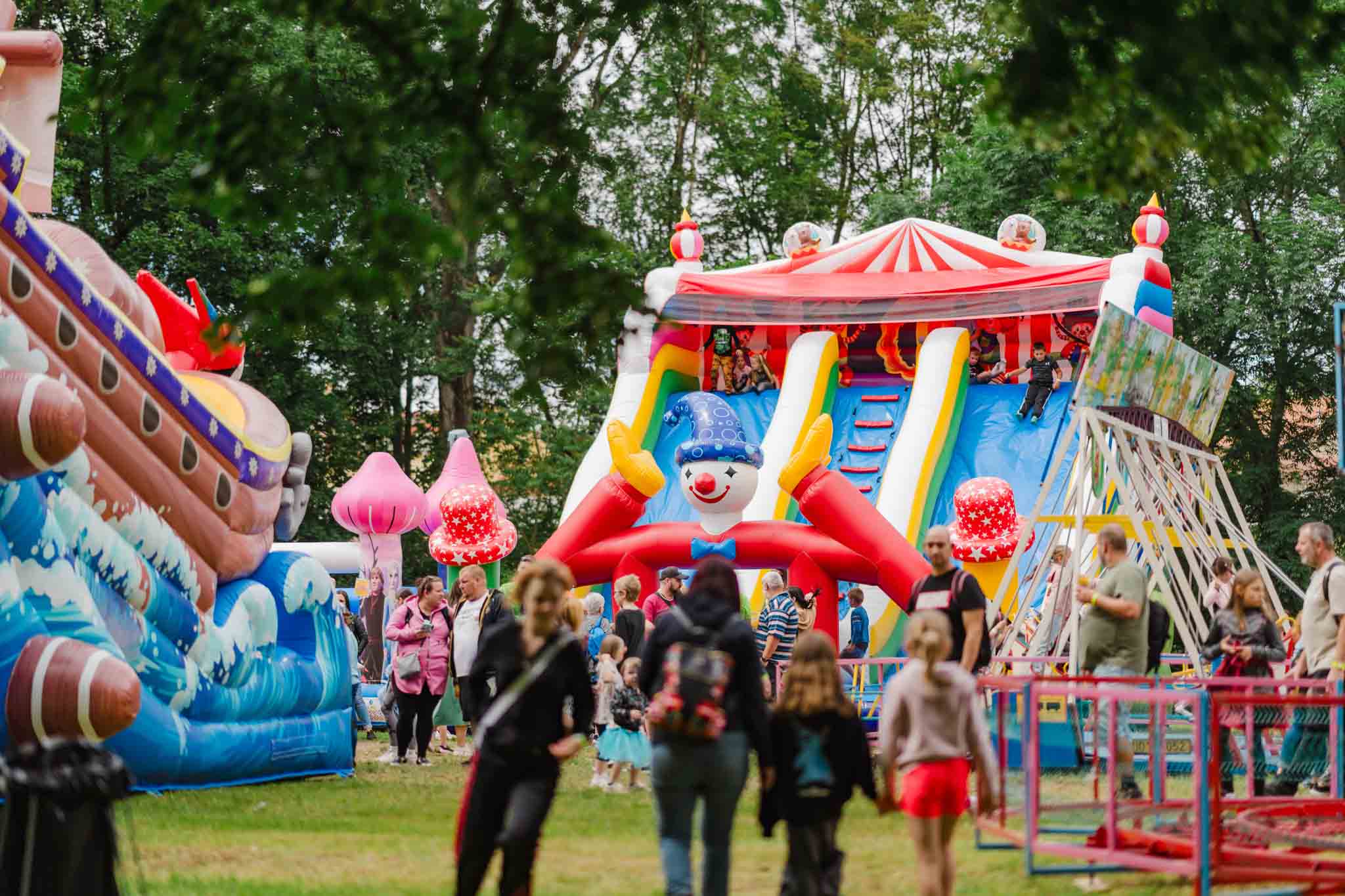 Autodrom, řetízkový kolotoč, vyhlídkové kolo, dětské kolotoče, nafukovací hrady a prolejzačky to vše v ceně vstupenky.